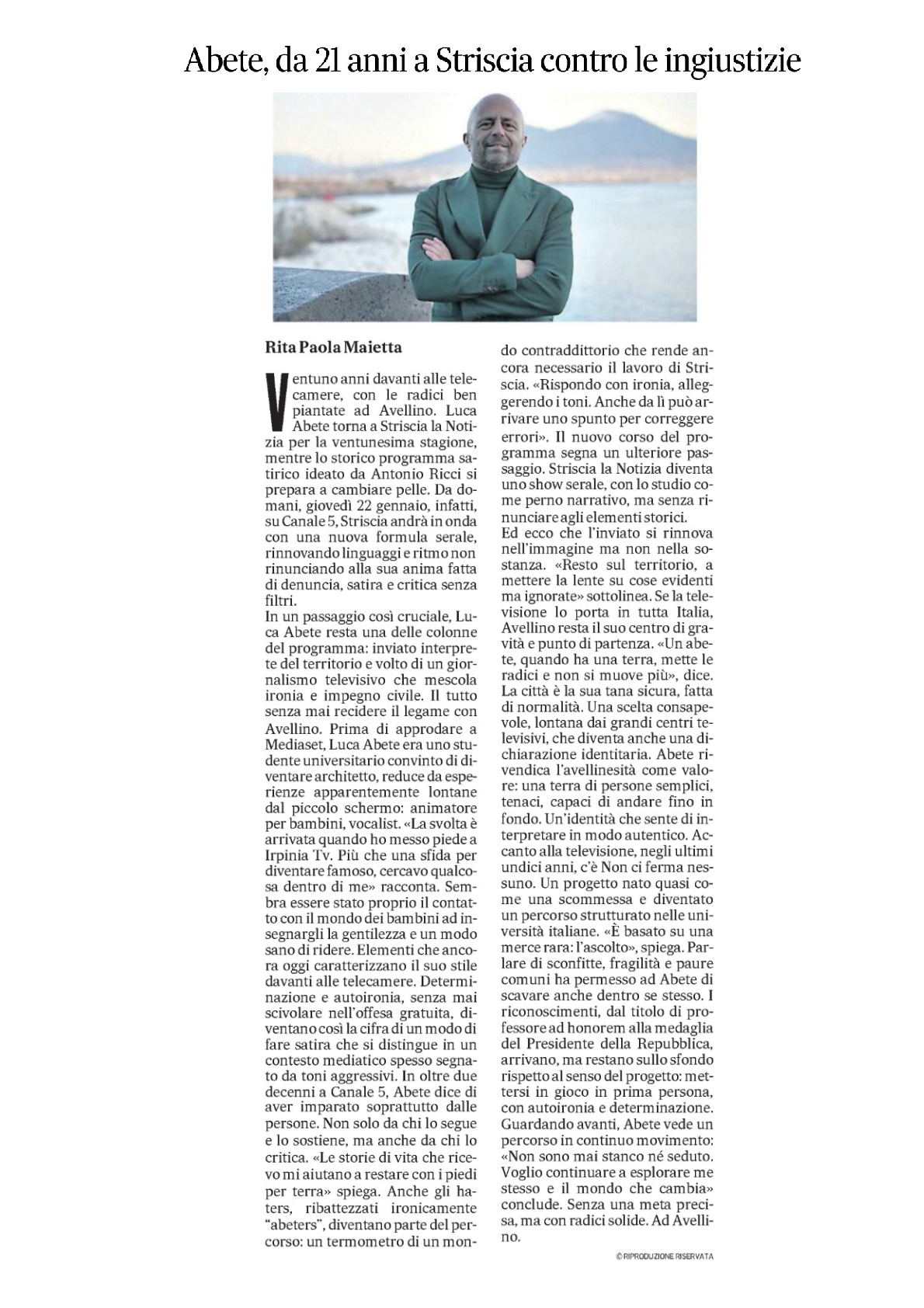 L'intervista all'inviato campano che quest'anno festeggia i 21 anni di partecipazione con il programma di Canale 5 che sbarca in prima serata: "Non ho mai vacillato. Sono nato per fare Striscia" Striscia la notizia torna in onda giovedì su Canale 5, spostandosi dal consueto access prime-time alla prima serata, dopo sette mesi di stop. NapoliToday ha intervistato Luca Abete, storico inviato del programma di Antonio Ricci, su tutte le novità che lo riguarderanno in questa nuova edizione. Quali sono le novità principali che riguardano il programma e cosa cambierà nei servizi di Luca Abete? “Sono passati un po’ di anni ma ripartiamo come se fosse la prima volta. Il nuovo format è più spudoratamente televisivo, ma con una continuità chiarissima: satira, attualità, imprevedibilità e quella sana allergia al quieto vivere che ci ha sempre contraddistinto. Per me cambia il vestito, non il vizio. Io resto il guastafeste di sempre, con un total green completamente rinnovato e la solita voglia di andare dove nessuno osa, soprattutto quando dà fastidio”. Che emozione c'è nel ripartire al tuo 21esimo anno di programma? “Ti assicuro che non riparto per abitudine, ma per fame. Fame di sperimentare nuovi linguaggi, di scardinare consuetudini sgradevoli, di rappresentare ancora una volta quella porzione di umanità che necessita di punti di riferimento a cui affidare la propria speranza. Questo nuovo corso è un upgrade emotivo prima ancora che televisivo. Nei miei servizi resto fedele a me stesso e al mio pubblico: ironia, determinazione sempre educata e tanta voglia di andare fino in fondo. Dopo ventuno anni la verità è questa: quando senti ancora la scossa, vuol dire che sei nel punto giusto”. Un'anticipazione sui servizi che andranno in onda? Ci sarà un filone in particolare da seguire? “In un programma settimanale è difficile parlare di “filoni”: il mio unico filo conduttore sarà mettere una lente d’ingrandimento su tutto quello che esiste, ma inspiegabilmente viene tollerato, ignorato o, peggio, normalizzato. Mi occuperò di bambini travolti da esempi sbagliati di adulti che dovrebbero tutelarli. Andrò a disturbare organizzazioni criminali che si arricchiscono nell’indifferenza generale, e personaggi senza scrupoli che fanno profitto sulla fragilità, sulla malattia, sulla disperazione altrui. Ti anticipo che non sono mancati epiloghi burrascosi, ma anche soddisfazioni e provvedimenti risolutori”. Alcuni dei volti storici sono andati via o non sono stati riconfermati, tu hai mai vacillato in questi mesi di incertezza? Cosa ti ha spinto a restare fedele a Striscia? “Una pausa così lunga Striscia non l’aveva mai vissuta, ed è normale chiedersi cosa stia succedendo. In quei mesi la risposta è arrivata dalla strada, non dai corridoi. Le persone mi fermavano, mi abbracciavano, mi dicevano “quando tornate?”. Ed è lì che capisci che questo programma non è solo televisione, è un’abitudine affettiva, un presidio. Alcuni colleghi hanno fatto scelte diverse, legittime, artistiche, personali. Io no. Perché io credo di essere nato per fare Striscia la Notizia. L’ho sempre detto: se non fosse esistita, avrei sognato un Antonio Ricci capace di inventarla. Sono un disturbatore gentile, uno scassa-pigne a fin di bene! E se disturbare significa non voltarsi dall’altra parte, allora sì: è il mestiere più bello del mondo del quale sento di non poter fare a meno”. -- https://www.napolitoday.it/attualita/luca-abete-striscia-la-notizia.html © NapoliToday -- Luca Abete sul ritorno di Striscia la Notizia: "Per me cambia il vestito ma non il vizio. Con la solita voglia di andare dove nessuno osa" https://www.napolitoday.it/attualita/luca-abete-striscia-la-notizia.html © NapoliToday -- https://www.napolitoday.it/attualita/luca-abete-striscia-la-notizia.html © NapoliToday