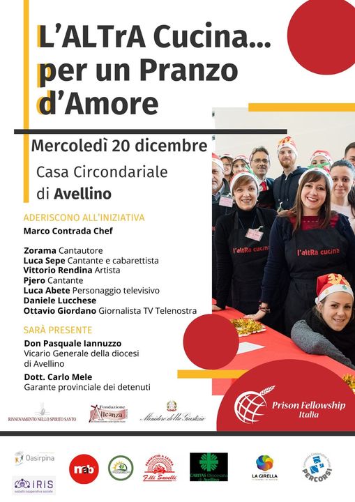 “L’ALTrA Cucina… per un Pranzo d’Amore”- X Edizione dei Pranzi di Natale “stellati” per i detenuti italiani L’Associazione Prison Fellowship Italia onlus, in collaborazione con il Rinnovamento nello Spirito Santo, Fondazione Alleanza del RnS e il Ministero della Giustizia, si appresta a festeggiare la X Edizione dell’evento “L’ALTrA Cucina… per un Pranzo d’Amore”. Mercoledì 20 dicembre l’associazione entrerà in 29 Istituti penitenziari italiani per condividere, con oltre 4000 detenuti e detenute: un gesto d’amore nel segno della solidarietà. Un Pranzo di Natale “regale” perché a realizzarlo con le loro brigate saranno, ancora una volta, chef stellati e cuochi dell’alta cucina, e a servirlo, con generosità e partecipazione, volti noti del mondo dello spettacolo, dello sport, dell’arte e del giornalismo. A dare un sapore speciale a questo Pranzo di Natale, gli ospiti seduti a tavola: i detenuti e (dove consentito) le loro famiglie. Per questa X Edizione hanno confermato la loro adesione all’evento di Natale i seguenti istituti penitenziari: Roma Rebibbia (sez. femminile), Milano Opera, Torino, Alessandria, Aosta, Napoli Secondigliano, Nisida minorile (NA), Salerno (sez. femminile), Eboli (SA), Aversa (CE), Avellino sez. (maschile e femminile), Ariano Irpino (AV), Bologna (sez. maschile e femminile), Castelfranco Emilia (MO), Parma, Firenze minorile, Massa, Teramo (sez. femminile), Pesaro, Castrovillari (CS), Palmi (RC), Paola (CS), Vibo Valentia, Cagliari minorile, Lanusei (NU), Palermo, Benevento minorile. Chef stellati, maestri di cucina, osti o cuochi dell’alta cucina del nostro Paese: sono moltissimi coloro che hanno accettato di mettere a disposizione la loro arte culinaria e le loro competenze per compiacere migliaia di palati: Fulvio Pierangelini, Domenico Iavarone, Davide Pezzuto, Gaetano Alia e Luigi Ammirati, Nino Rossi, Carmelo Fabbricatore, Maurizio e Armando Sciarrone, Marco Contrada, Marianna Vitale, Filippo La Mantia, Carlo Catani, Francesco e Barbara Dall’Argine, Luca Zavattini, Nicole Zerbini, Cesare Battisti e Eugenio Boer, Marco Sorbini, Matteo Baronetto e Guido Perino, Domenico Sorrentino, Michelina Fischetti e Serena Falco, William Pitzalis e Piero Ditrizio, Dario Picchiotti, Antonio Morelli, Angelo Fabozzo, Carmelo Criscione, Niccolò Palumbo, Ivan Milani, Ornella Cursi, Luigina Voyat, Samuele Riva, Roberto Vasori, Sergio Ruocco e Antonio Iarrobino, Marco Rispo, Alberto Bettini e Francesco Vincenzi, Stella Doa ed Ercole Monni, Ciro Del Luongo, Unione Cuochi della Valle d’Aosta, Unione Cuochi della Campania. A imbandire le tavole di 29 istituti, 1200 volontari e, a servire le portate (oltre 12.000 piatti), decine di artisti. Tra questi: Giovanni Caccamo, Antonio Mezzancella, Marco Giallini, Edoardo Bennato, Gian Luigi Nuzzi, Sabrina Scampini, Nunzia De Girolamo, Raimondo Todaro, Marco Capretti, Alda D’Eusanio, Rossella Brescia, Ilaria Grillini, Angela Missoni, Luca Abete, Stefano Masciarelli, Gianluigi Paragone, Alberto Bertoli, Rino Ceronte, Luca Pugliese, Fabrizio Coniglio, Andrea Segré, Renzo Sinacori, Emanuele Fasano, Diego Nicolosi (Papillon), Stefano Jurgens, Roppoppò (il cantastorie Franco Palumbo), Carmine e Valerio Farago, le comiche Alessandra Ierse e Nadia Puma, Gianni Astone, Vincenzo Emmanuello, Niccolò Torielli, Eddy Mirabella, Daniela Mudu, Rachele Sangiuliano, DJ Ringo (Rocco Anaclerio), Massimo Mattia, Antonio Fulfaro, Zorama, Luca Sepe, Laura Grispo, Gianpiero Perone, Massimo De Rosa, Nicoletta Dale, Ottavia Pojaghi Bettoni, Ottavio Demontis, Zorama, Luca Sepe, Vittorio Rendina, Pierfrancesco Criscitiello (in arte Pjero), Mariano Grillo, Pasquale Palma, Benito Urgu, e altri artisti in attesa di conferma. Questa edizione dei Pranzi di Natale presenta molte novità. Per la prima volta, un istituto scolastico contribuirà economicamente alla realizzazione dei Pranzi. Si tratta del Liceo classico “Bernardino Telesio” a Cosenza che ha raccolto e devoluto la quota di mille euro per coprire parte delle spese dei Pranzi di Natale della Regione Calabria. Con l’intervento di Andrea Segrè, ordinario di Economia circolare e politiche per lo sviluppo sostenibile all’Università di Bologna, i Pranzi di Natale diventano anche un’occasione per sensibilizzare sul tema dello spreco alimentare. Il Pranzo di Natale a Bologna verrà realizzato da Filippo La Mantia in parte con il cibo recuperato dagli sprechi, grazie alla campagna pubblica di sensibilizzazione “Spreco Zero” (sprecozero.it), un progetto di Last Minute MarketImpresa Sociale, in collaborazione con il Dipartimento di Scienze e Tecnologie Agro-alimentari (DISTAL) Alma Mater Studiorum – Università di Bologna. Inoltre, per la prima volta, il Pranzo di Natale (a Torino) sarà servito alla sezione dei “Sex offender”, di detenuti, cioè, che hanno commesso crimini a sfondo sessuale, solitamente reclusi in aree isolate e protette. Sempre nel carcere di Torino, oltre ai comici, si esibiranno per la prima volta i Stardust, un gruppo musicale nato dal progetto “La Musica che gira dentro”, sviluppato con alcuni detenuti dell’Istituto. I costumi e le scenografie sono frutto del lavoro di un secondo progetto, il “Laboratorio Riuso dello Scarto” che ha coinvolto altri reclusi. Altro tratto distintivo, il contributo di molte associazioni e fondazioni, tra cui Tempi di Recupero, Organizzazione no profit Manalive, Fondazione Severino, Coldiretti, Unione Cuochi della Valle d’Aosta, Unione Cuochi della Campania, Last Minute Market – Zero Spreco.